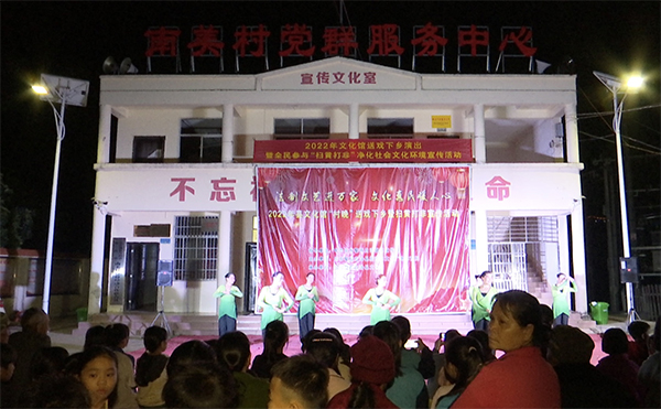 本次“村晚”送戏下乡暨扫黄打非惠民专场演出活动进乡村,让法治意识入人心,以口才表演《校园法制我来讲》向群众现场讲解“扫黄打非”相关知识宣传,引导群众树立自觉抵制各类非法出版物。